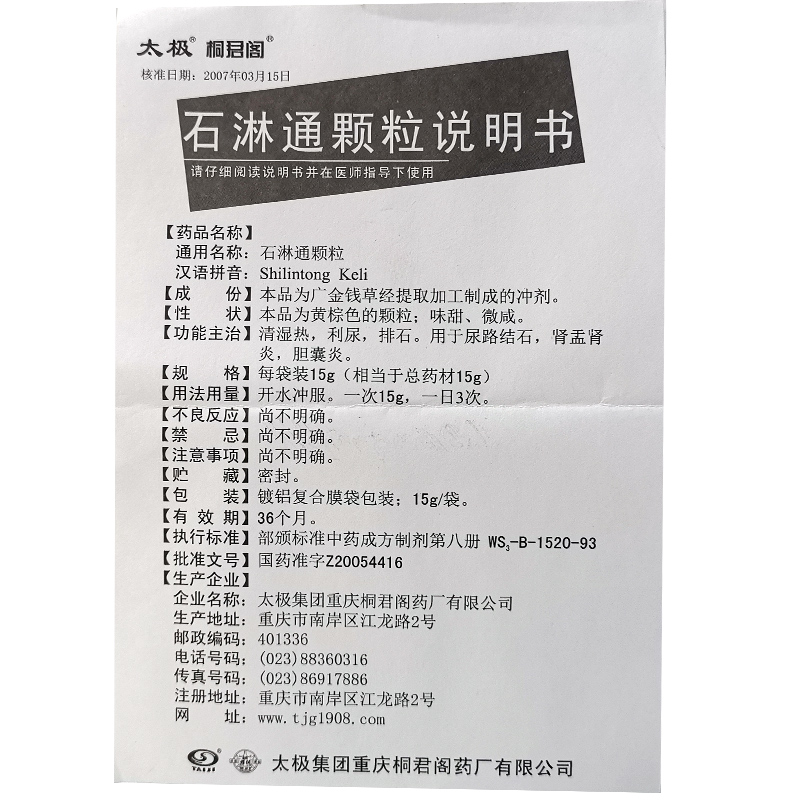 首页>全部商品>专科用药>男科用药>尿路结石>太极石淋通颗粒10袋