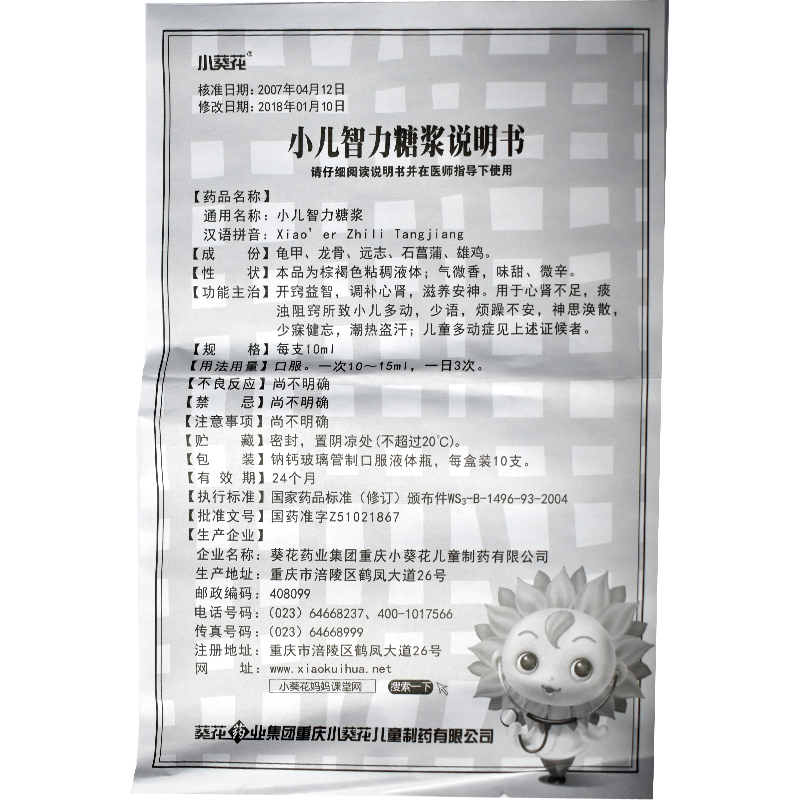 葵花小儿智力糖浆