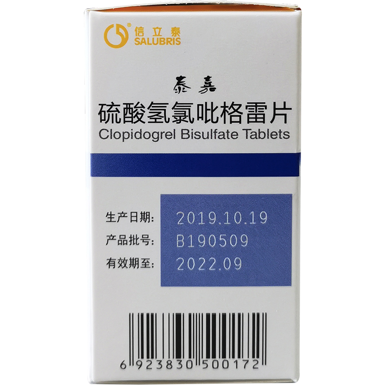 首页>全部商品>专科用药>心脑血管>心脑血管综合用药>泰嘉硫酸氢氯吡格雷片20片